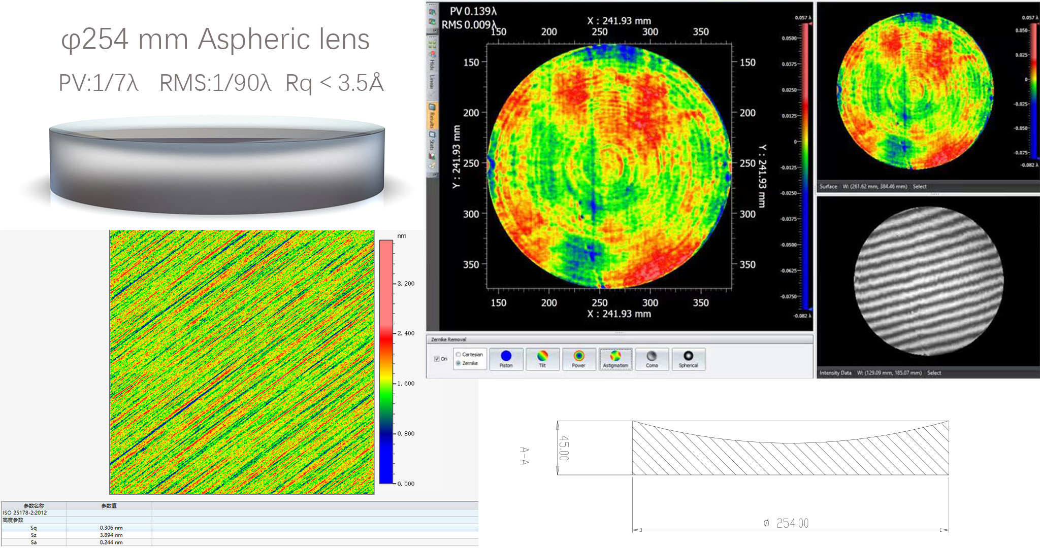 面形加工精度优于1/100λ (6nm) (RMS) 曲率半径公差最高:优于万分之一 |