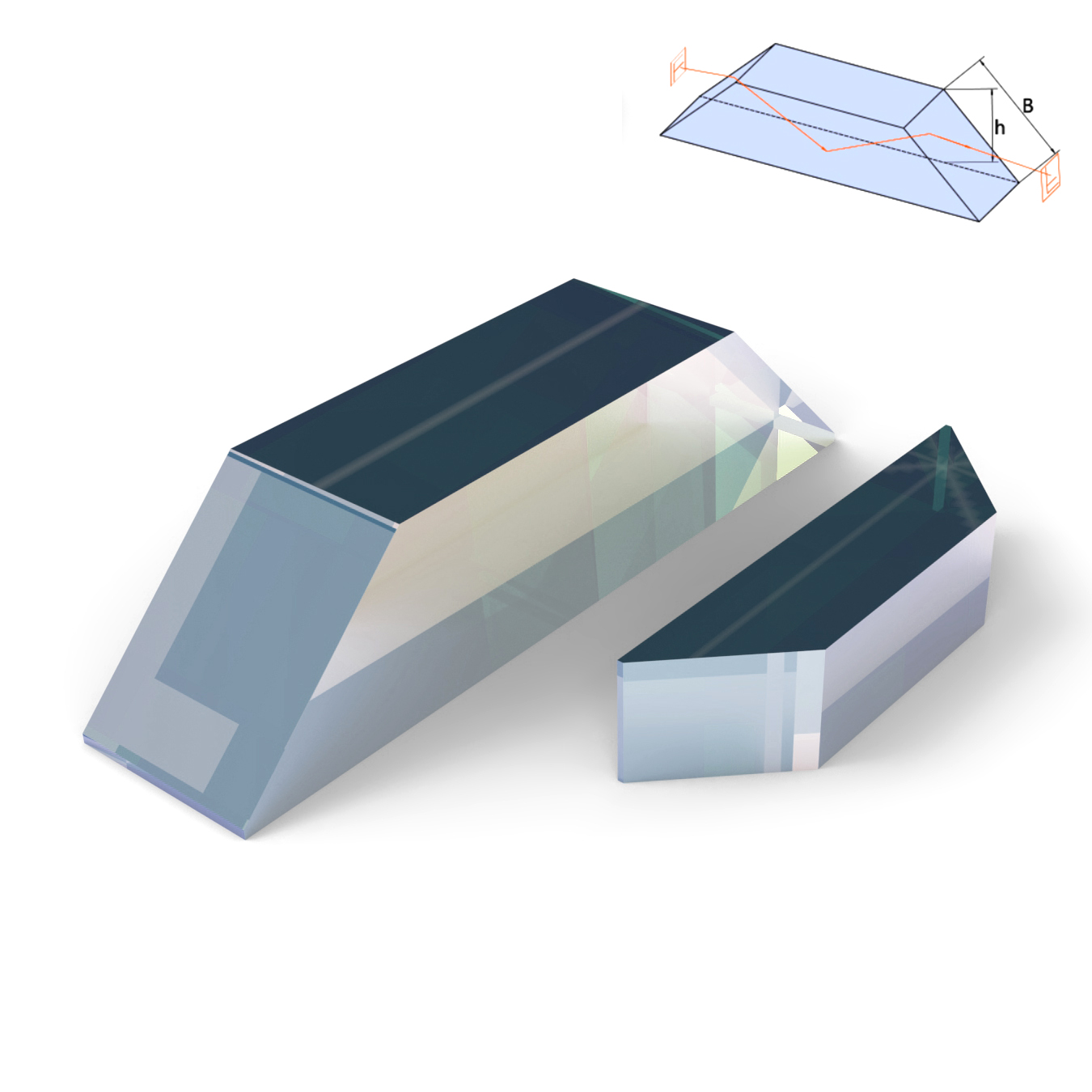 道威棱镜可以被认为是顶端被切除的直角棱镜,这样就减轻了棱镜的重量和杂散光的内部反射。它们在用于会聚光束时会引入像散,所以我们建议用于准直光束。此外,这些棱镜还会影响透射光束的偏振态。
